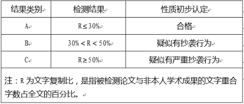 注:R为文字复制比,是指被检测论文与非本人学术成果的文字重合字数占全文的百分比。