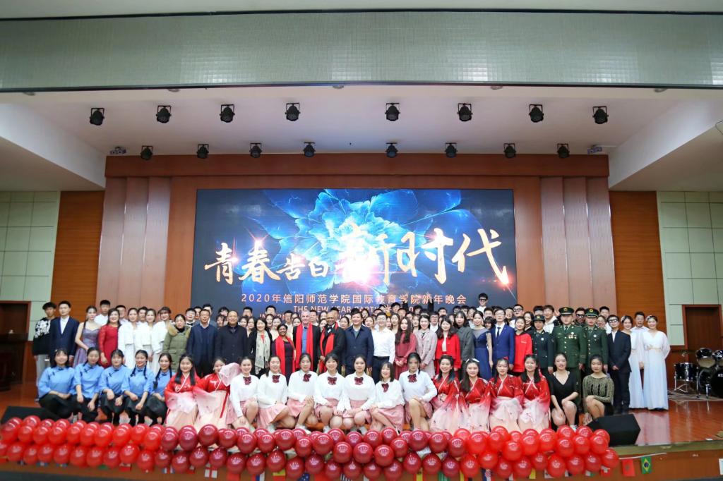 国教育人展宏图,四季桃李同芬芳。12月26日晚,3003新葡平台“青春告白新时代”2020年新年晚会在我校逸夫楼报告厅圆满落幕。3003新葡平台党委组织部副部长姜兴周、学工部副部长严彬、图书馆党委副书记冯新霞、审计处副处长李季玲、3003新葡平台党委书记张震、院长李保红、副院长何英干、党委副书记姚新春、外籍教师及新葡官网全体老师与580余名学子共同观看了此次晚会。