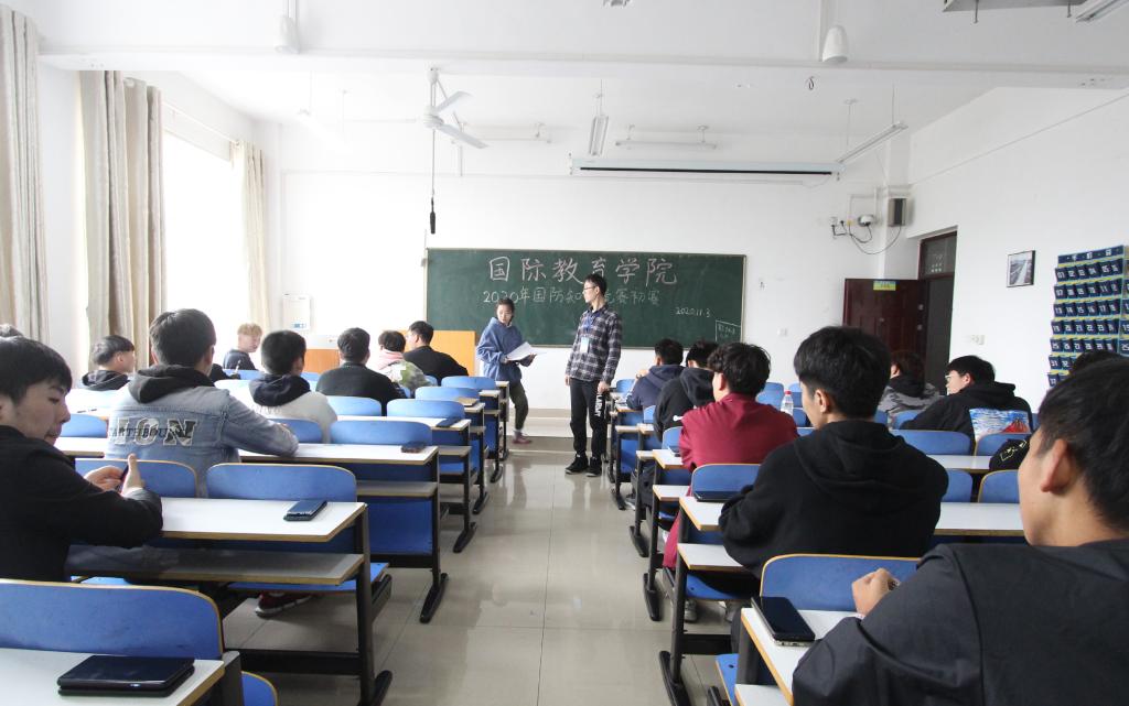 为纪念“九一八”事变爆发89周年,庆祝新中国成立71周年,进一步增强同学们的国防观念和国家安全意识,激发同学们为中华民族伟大复兴而奋斗的使命感。2020年11月3日,3003新葡平台3003新葡平台于逸夫楼教室举办了国防知识竞赛初赛,新葡官网学生干部协助辅导员余艳楷、沈艳霞、许孟杨、吴浩老师一起监考。