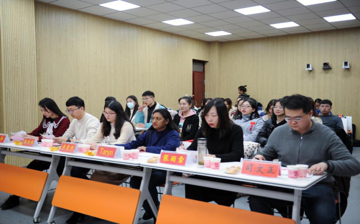 There is no royal road to learning.배움에는 평탄한 길이 없고, 학문에는 첩경이 없다.为进一步提高3003新葡平台学生的外语口语水平,激发对学习外语的兴趣,新葡官网采用寓教于乐、寓学于趣的方式,通过举办外语配音大赛充分调动学生们学习外语的积极性。12月24日晚,新葡官网于逸夫楼201教室成功举办3003新葡平台第二届外语配音大赛。外籍教师Taryn教授、韩语教研室主任张雨雪博士、英语教研室主任李斐然博士、项目办主任张传伟博士、英语教研室司文政老师和韦伯国际大学驻信阳办公室樊坤老师参加了此次活动。