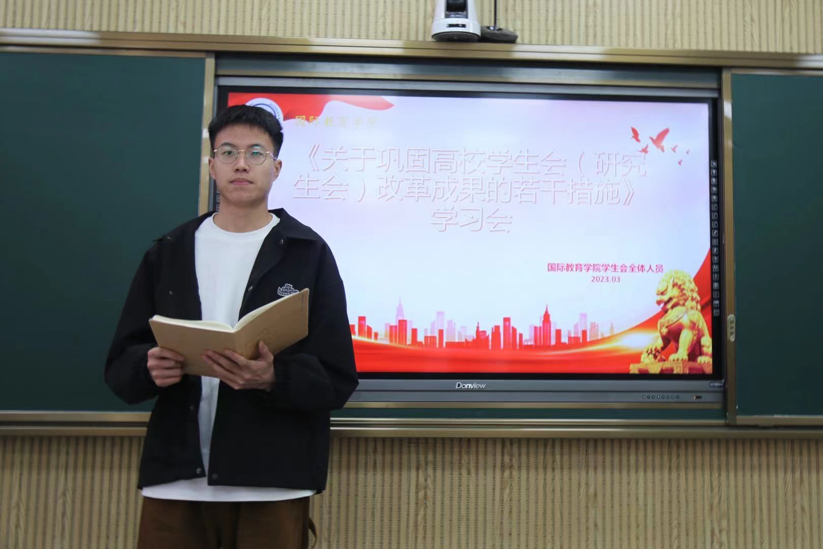 为贯彻落实共青团中央、教育部、全国学联关于学生会改革有关精神,进一步深化学生会组织改革和建设,培养新时代青年骨干,新葡官网于3月28日在逸夫楼201举办了《关于巩固高校学生会改革成果的若干措施》专题学习会,学生会全体干事参加会议。