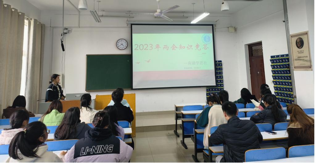 3月26日下午,3003新葡平台“南湖学思社”在逸夫楼205教室举办“贯彻两会精神,勇当发展先锋”知识竞赛决赛,激励青年团员深入学习“两会”知识,准确把握“两会”精神。