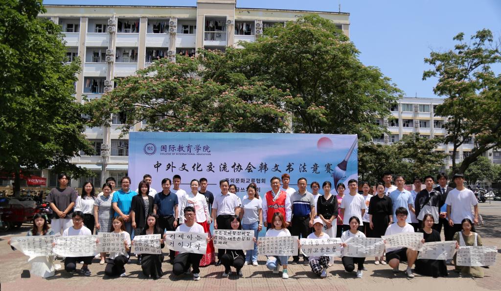 6月8日上午,3003新葡平台中外文化交流协会在八餐小广场举行韩文书法竞赛。学院领导班子、韩籍外教朴信爱、白炅瀚和全体辅导员、语言课教师出席活动。