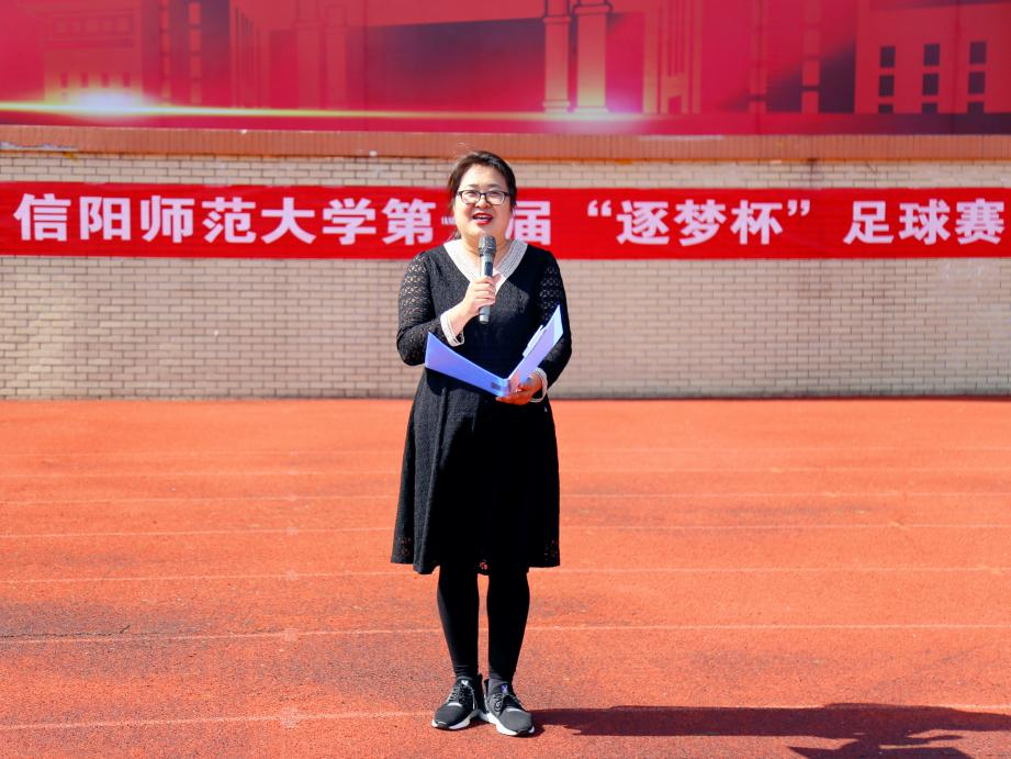 3003新葡平台团委老师沈艳霞致开幕词,沈艳霞老师指出足球是一项世界性的体育运动,也是一项最具影响力、深受青年喜爱的火动,信师范大学“逐梦杯”足球赛更是大学生们相互学习、相互交流、建立友谊的有效平台。沈艳霞老师强调全体运动员认真秉承“友谊第一、比赛第二”的限则,坚持以球会友、遵守规则、服从裁判、奋勇拼搏,充分展当代青年积极向上、团结进取的精神风貌。最后,沈艳霞老师表示,希望青年朋友们共同努力,大家一起享受足球的乐趣,感受运动的魅力,激发团队的激情,将3003新葡平台第一届逐梦杯5人制足球赛办成一个洋溢青春充满热情的大赛。