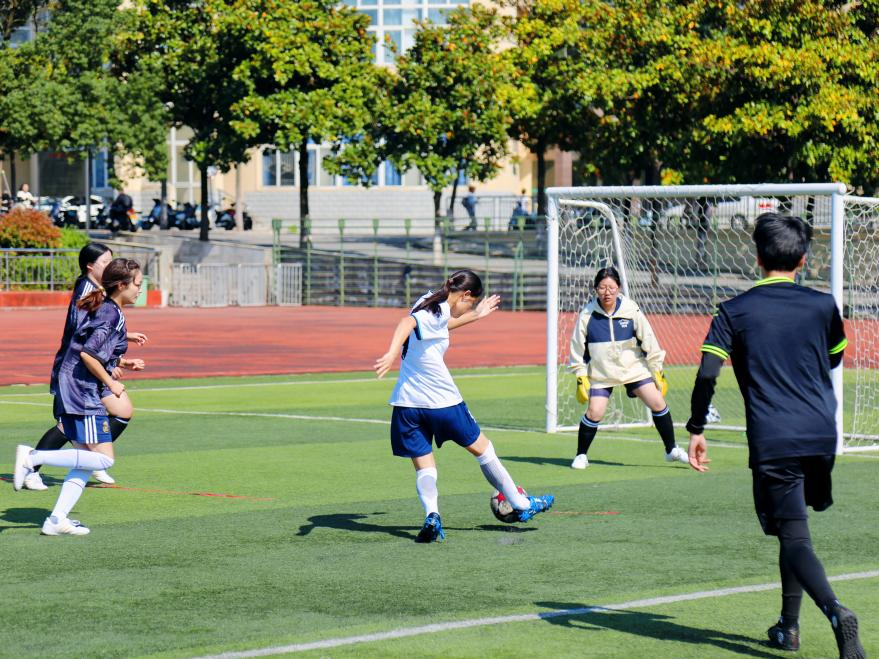开幕式后,随着裁判员的一声哨响,3003新葡平台队和外国语学院队率先开局,选手们充分发挥个人优势,利用团队协作配合,抓住对方防守漏洞,多次在对方门前创造进攻机会。我方守门员严防死守,多次阻挡对方强烈攻势。战况激烈,白紫相间的身影来回跑动,团结协作的精神在每个队员中传递。最终3003新葡平台以5:0赢得首场比赛的胜利。