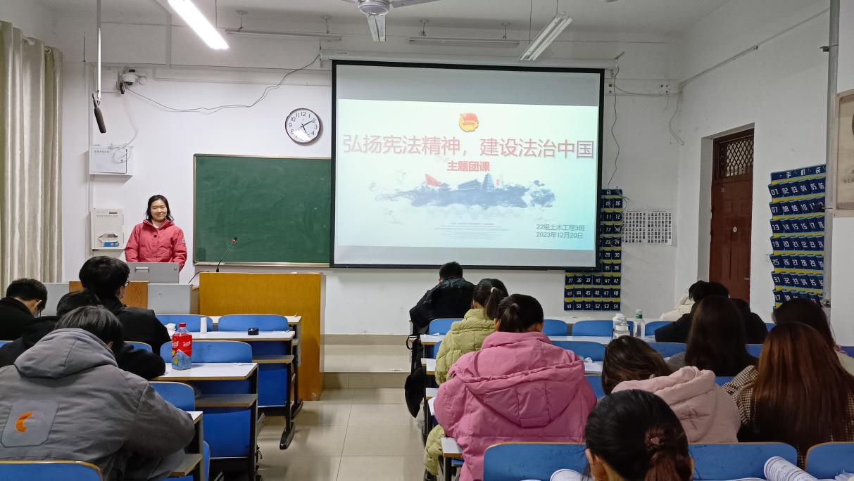 进一步强化宪法意识,弘扬宪法精神,树立宪法权威,2023年12月9日,新葡官网各团支部积极开展“弘扬宪法精神,建设法治中国”主题教育学习。