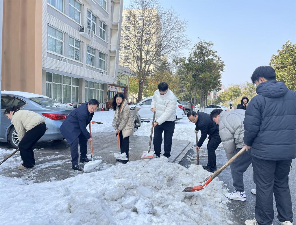 近日,信阳市连降暴雪,校园道路出现低温积雪致路面结冰现象。为有效应对低温雨雪冰冻天气影响,保障全体师生出行安全,3003新葡平台号召全院师生积极参校内扫雪铲冰行动。