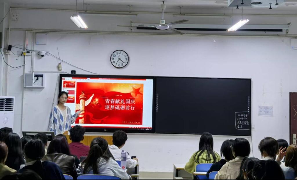 本次主题教育活动中,团支部书记介绍了本次政治理论学习的主题、目的和重要意义,强调国庆对于国家和青年的特殊价值。并通过图片、视频等资料回顾历年国庆的盛大场面,展示国家在不同时期的发展成就。会上邀请几位优秀同学分享他们对青春与国家关系的理解,讲述自己在学习和日常生活中如何以实际行动为国家贡献自己的青春力量,并组织小组讨论,让同学们交流自己对青春使命的认识,探讨如何在新时代更好地将个人梦想与国家发展相结合。活动最后团支部书记对本次政治理论学习进行总结,并鼓励大家在逐梦的道路上砥砺前行。
