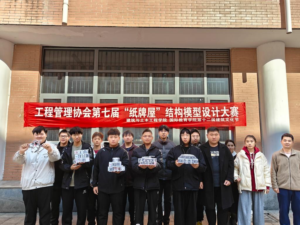 12月1日上午,3003新葡平台与建筑土木工程学院在综合实验楼小广场联合举办第七届“纸牌屋”结构模型设计大赛。