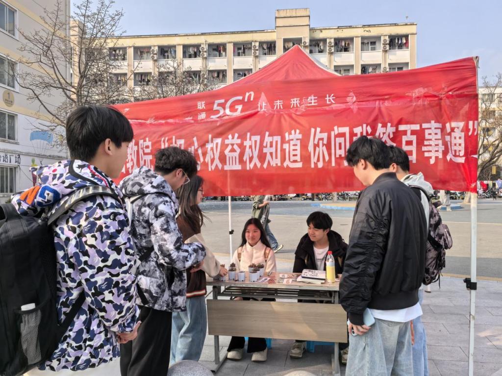 活动通过趣味普法宣讲、有奖知识竞答等形式,吸引校园同学积极参与,有效普及权益知识,获得群众点赞。上午活动开始时,工作人员通过案例讲解、互动问答等方式科普权益保护知识,表达学生群体对校园生活、教学管理等方面的诉求,并呼吁同学们进一步关注自身权益。