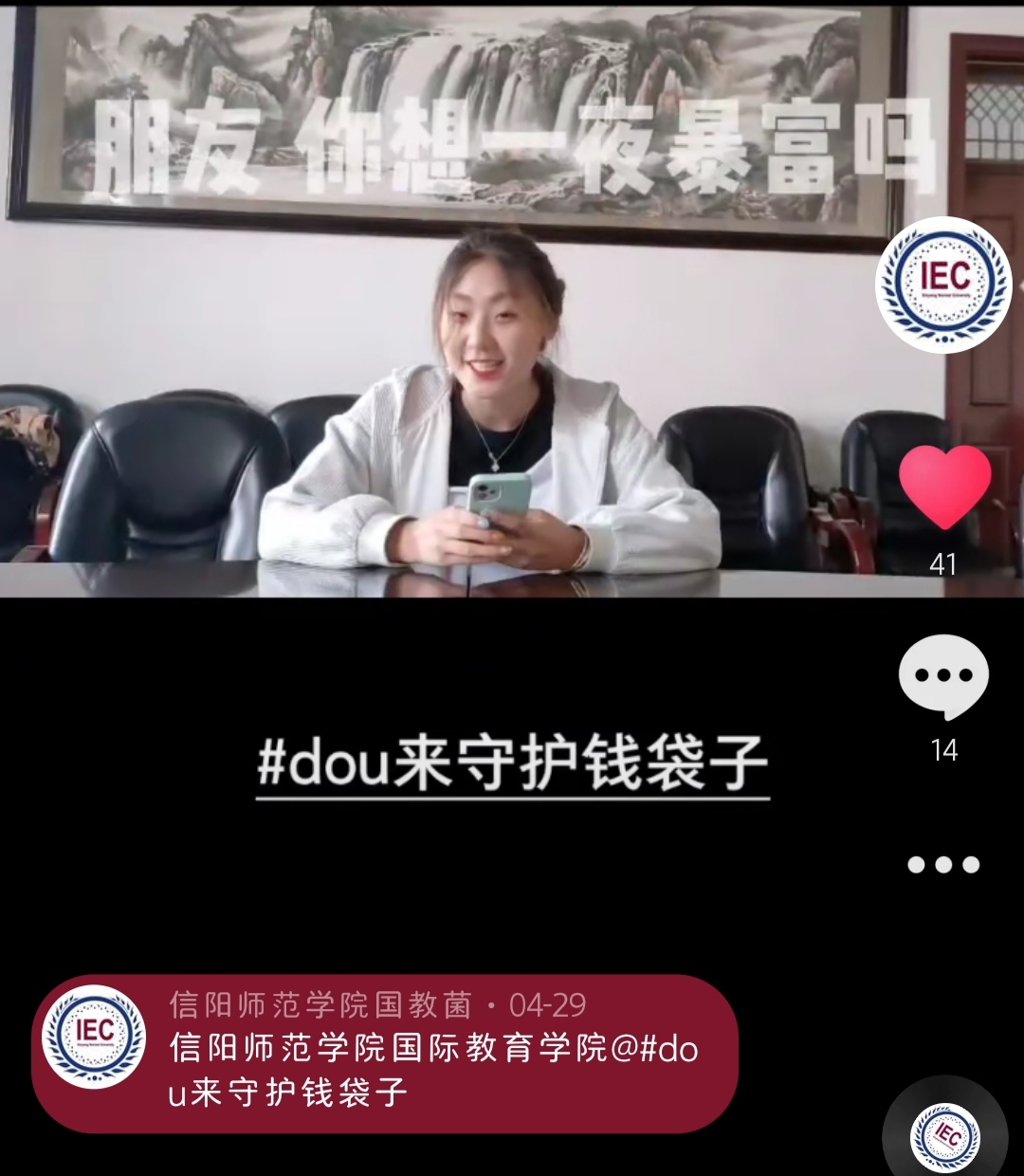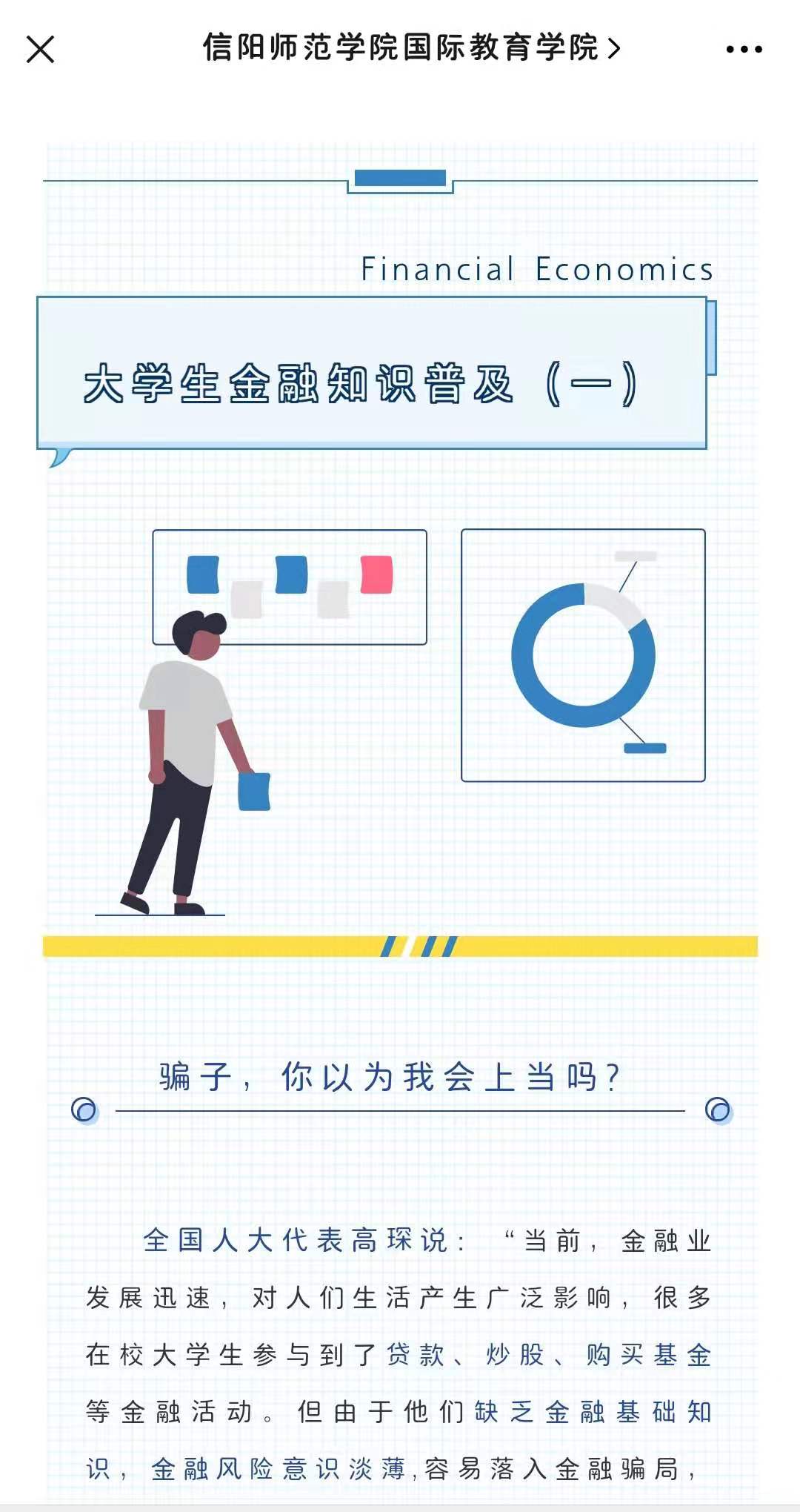 为加强金融知识学习教育,提升学生金融风险防范能力,帮助学生护好“钱袋子”,5月20日,3003新葡平台开展“守护钱袋子”金融知识宣讲活动,借助微信、抖音等新媒体平台向全院学生推广普及防范金融诈骗相关知识。