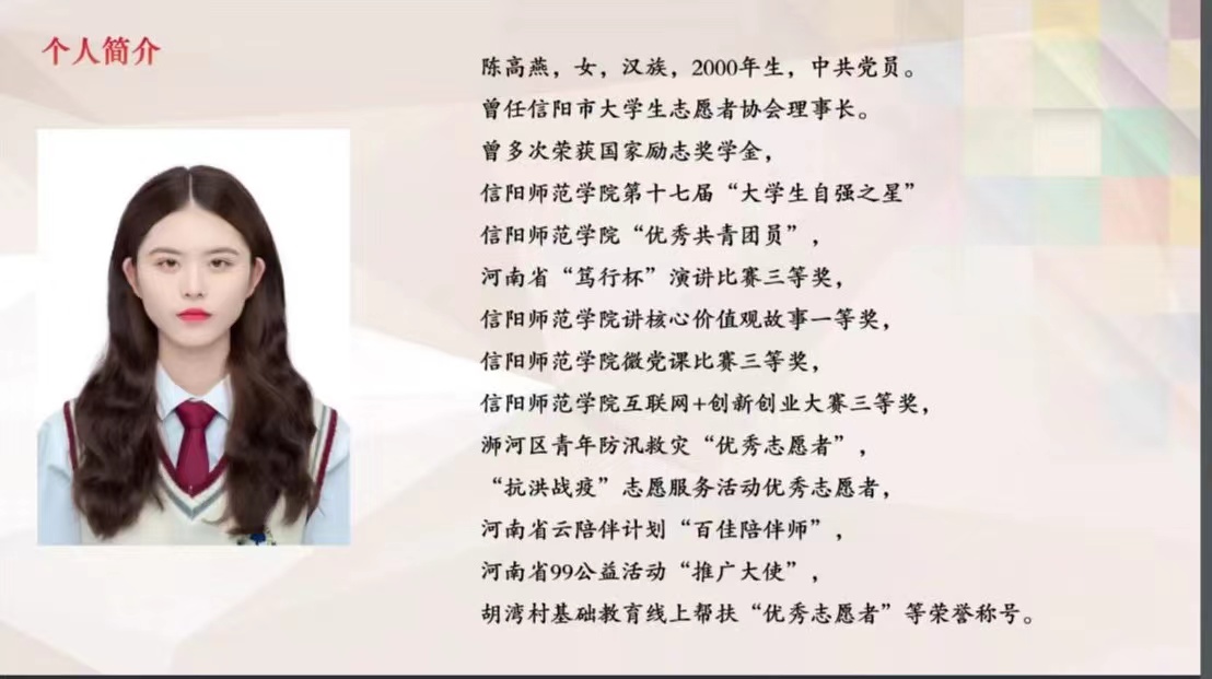 最后,虞晶晶对本次活动进行了总结,她指出奋斗是艰辛的,但玉汝于成,没有艰辛就不是真正的奋斗。作为新时代的青年大学生,我们更应该积极地向身边的榜样去学习,时刻保持一颗积极上进的心,不怕困难,努力奋斗,遇见更优秀的自己,书写更加精彩的人生。