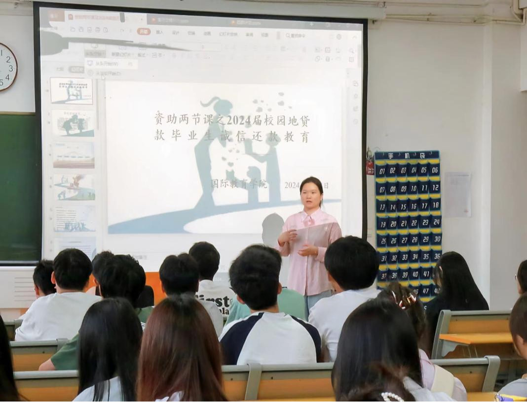 活动围绕毕业生助学贷款还款流程、还款途径和还款期限展开介绍,指出逾期还款会影响个人征信记录等严重后果,强调了贷款同学需要如期还款的必要性。