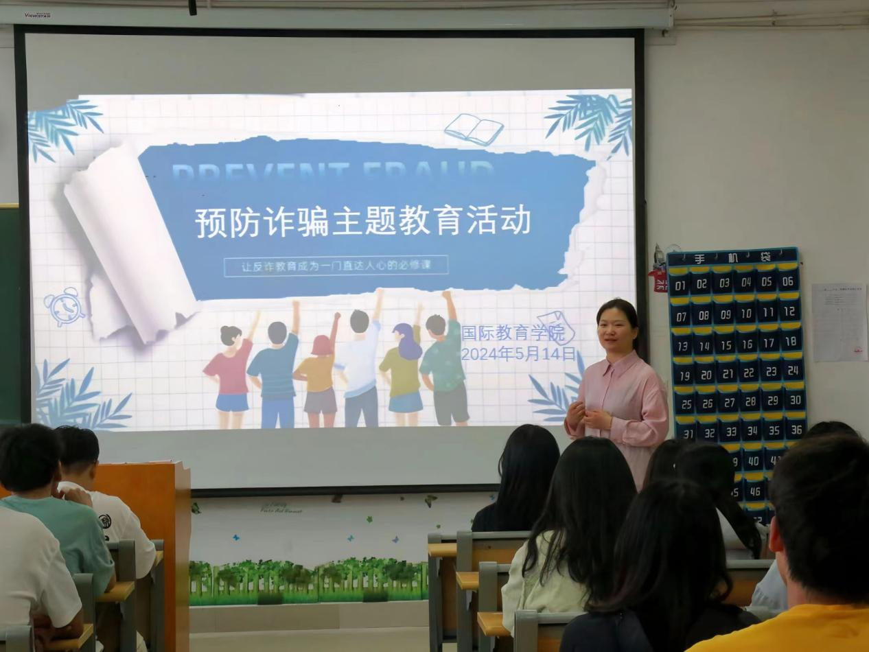 为增强学生防诈骗的安全意识,切实保护自身合法权益,维护校园和谐稳定,新葡官网于5月14日在逸夫楼412召开预防诈骗主题教育活动,专职辅导员虞晶晶主持本次活动。