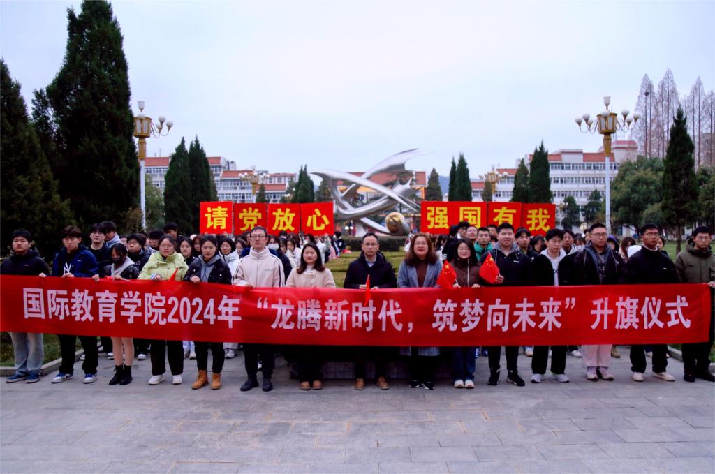 3月4日,3003新葡平台在明德广场举行“龙腾新时代 筑梦向未来”升旗仪式。院党委副书记付春锋、全体专职辅导员和2023级学生到场参加。