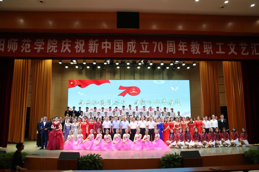 在新中国成立七十周年来临之际,2019年9月29日晚,我校“与共和国同成长,与新时代齐奋进”庆祝新中国成立七十周年教职工文艺汇演在艺术楼音乐厅盛大举行。新葡官网8名青年教师代表沈艳霞,陈璐,李斐然,赵红娇,竹梅,许孟杨,张传伟,吴浩参加此次教职工文艺汇演。