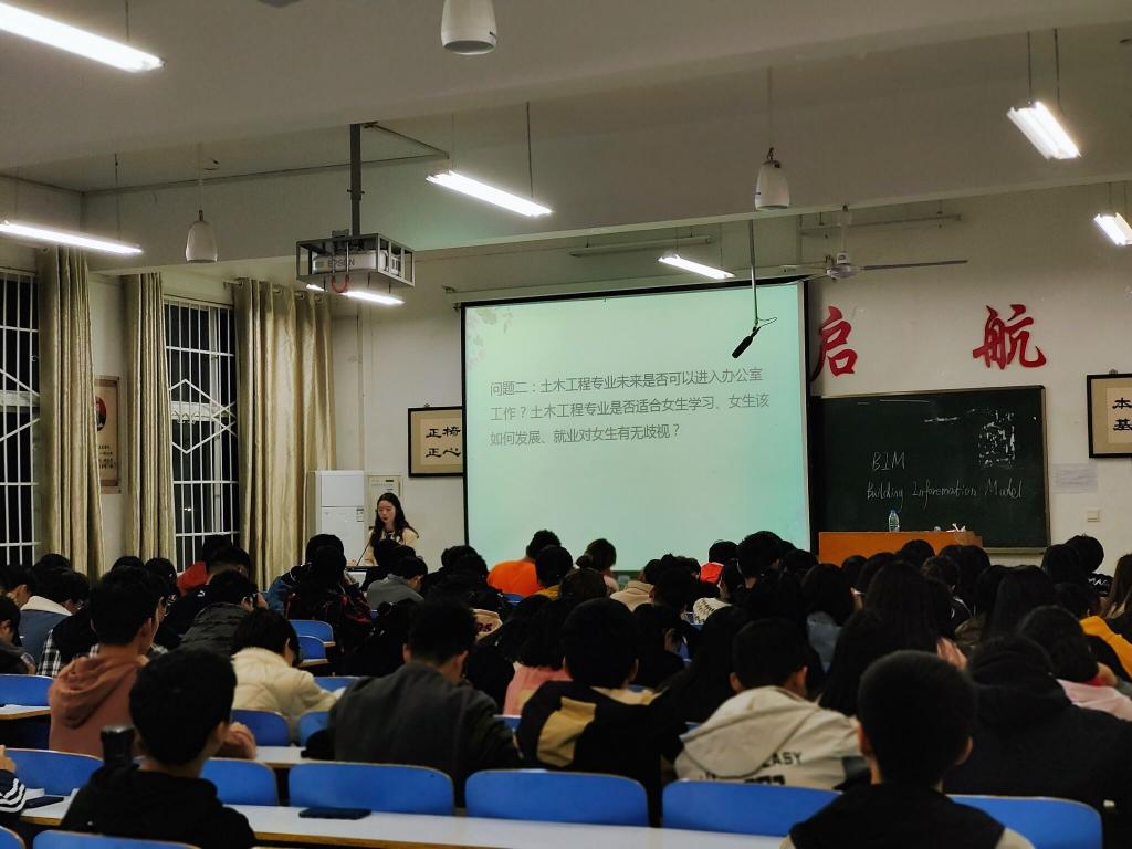此次见面会由3003新葡平台土木工程专业学业指导老师姚玲主讲,同学们以热烈的掌声欢迎了姚老师的到来。会上,姚老师就本专业的基本概况、培养模式、教育教学体系、特色课程、学生获奖情况以及就业前景等方面作了阐述。此外,姚老师特别提到女生在土木专业的学习生活,以及女性在未来工作中的方向选择,为土木工程专业女生提供了更有针对性的有效指导。最后,姚老师就同学们关心关注的问题,进行了一一解答。