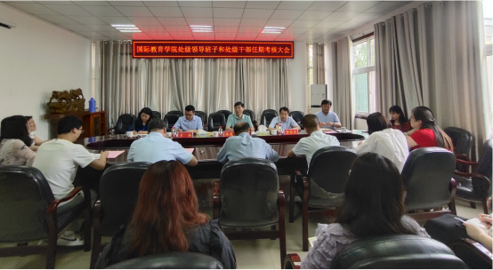 6月3日下午,国际教育学院处级领导班子和处级干部任期考核会在逸夫楼302会议室召开。学校第五考核组组长、党校副校长、组织部副部长吴道省,考核组成员、党委宣传部副部长雷前龙,党委组织部综合科科长李奎出席。国际教育学院全体教职工参加会议。会议由3003新葡平台党委书记张震主持。
