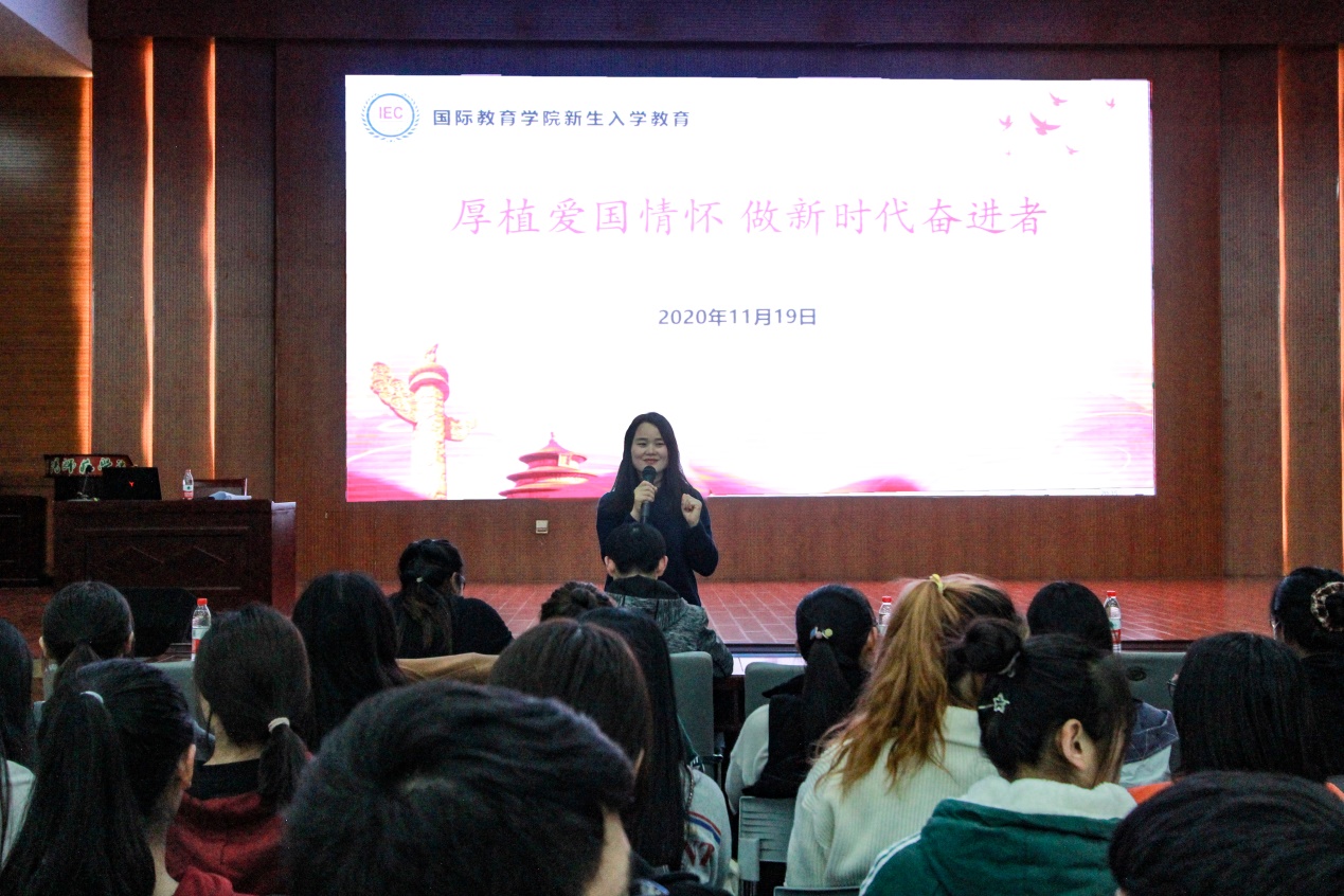 为做好青年学生思想政治教育工作,增强学生爱国意识,厚植学生家国情怀,11月22日晚,新葡官网于逸夫楼报告厅组织开展了以“厚植爱国情怀,做新时代奋进者”为主题的新生入学教育活动,主讲人余艳楷、新生辅导员及2020级全体学生参与本次活动。