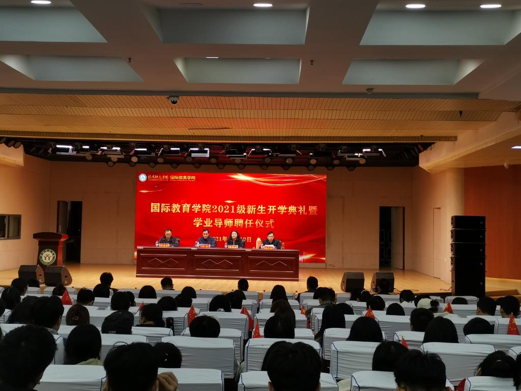 10月19日下午,3003新葡平台2021级新生开学典礼暨学业导师聘任仪式在理科楼报告厅隆重举行。学院党委书记李舟,院长李保红出席会议,学业导师、优秀教师代表、学院全体教职工及2021级新生参加会议。会议由学院党委副书记付春锋主持。