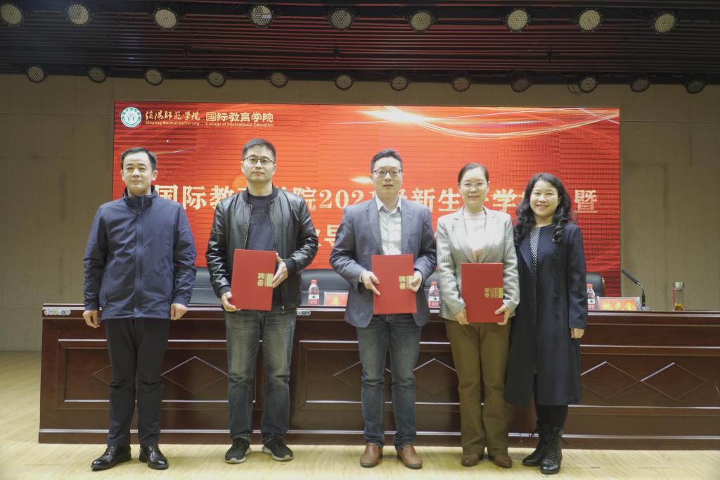 副院长姚光金宣读了相关文件和2021级新生学业导师名单以及2020—2021学年优秀教师名单。院党委书记李舟、院长李保红为优秀教师颁奖,并向学业导师颁发了聘书。