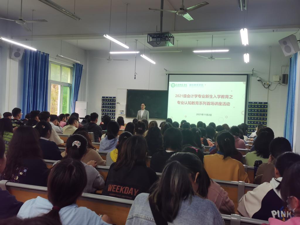 11月2日,新葡官网在教九楼309教室开展第三场专业认知教育活动。学业导师郭跃芳应邀为2021级会计学专业新生做专业认知教育讲座。辅导员沈艳霞主持讲座。