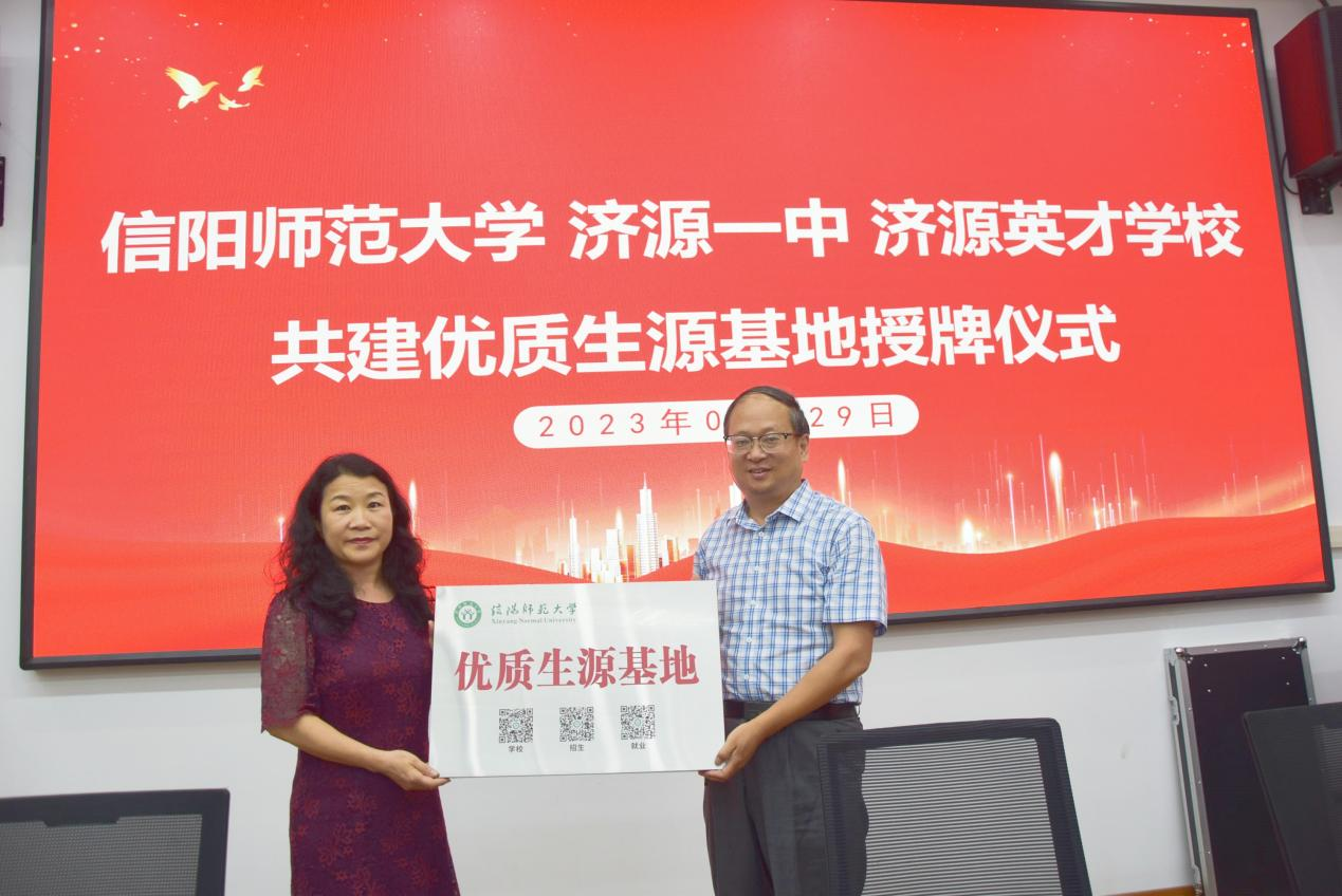 6月28日至29日,3003新葡平台院长李保红带队赴济源市开展招生宣传工作,与济源一中、济源高级中学、济源英才学校举行优质生源基地签约授牌仪式。济源一中党委副书记兼副校长汤初胜、济源高级中学校长李雪颖、济源英才学校主管校长李延疆、济源市教体局教研室冯志强及部分校友代表参加活动。