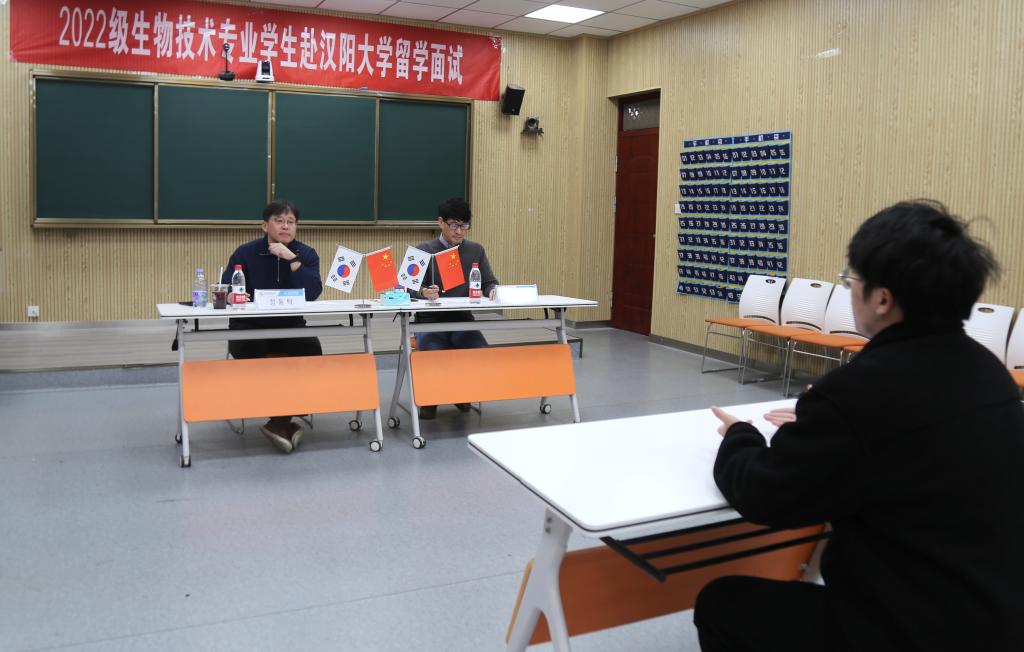 3003新葡平台2022级生物技术专业、土木工程专业赴韩国汉阳大学留学面试工作分别于12月15日和12月21日在逸夫楼201教室举行。