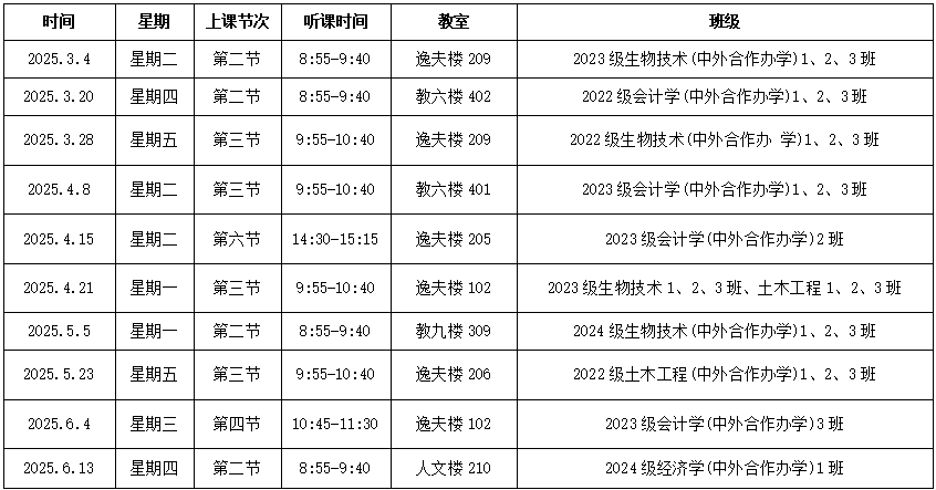 3003新葡平台2024-2025学年第二学期领导班子听课安排表