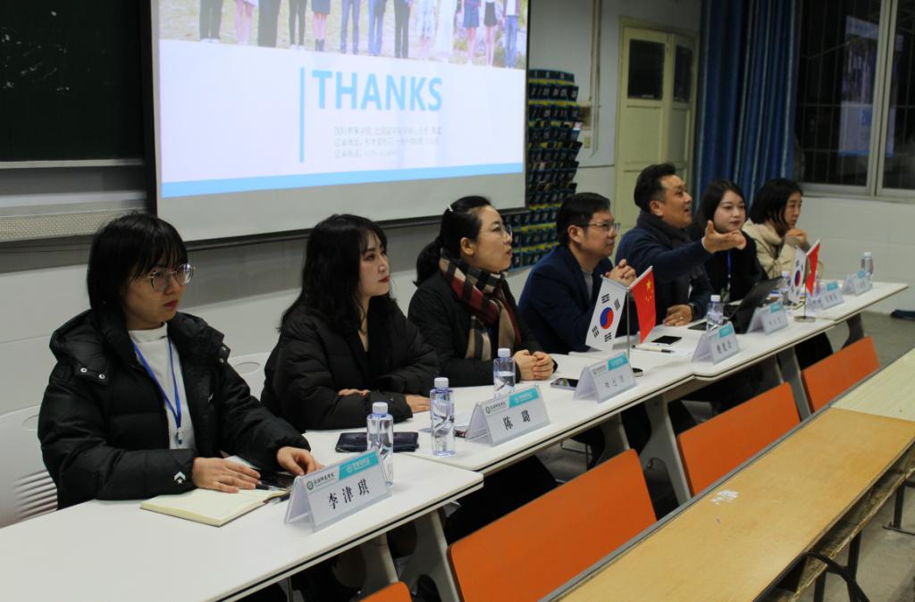 在现场互动环节,同学们就赴韩留学相关问题与领导老师深入交流。外籍韩语教师白炅翰、朴信爱分享了在韩生活经验,介绍了目前韩国疫情防控举措。海归博士张俊岚结合自身留学经历分享了中韩大学学习和生活差异、如何尽快适应留学生活等话题。教学部负责人朱妍妍讲解了出国留学学籍管理等事宜。
