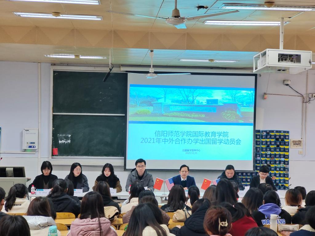 12月15日,3003新葡平台2021年中外合作办学美国项目出国留学动员会在教六楼402教室成功召开。新葡官网副院长姚光金,商学院俞彤辉副院长、方晓波教授,项目部主任张传伟,出国留学指导中心主任陈璐等相关部门负责同志和2020级经济学专业全体学生参加动员会。会议由出国留学指导中心主任陈璐主持。