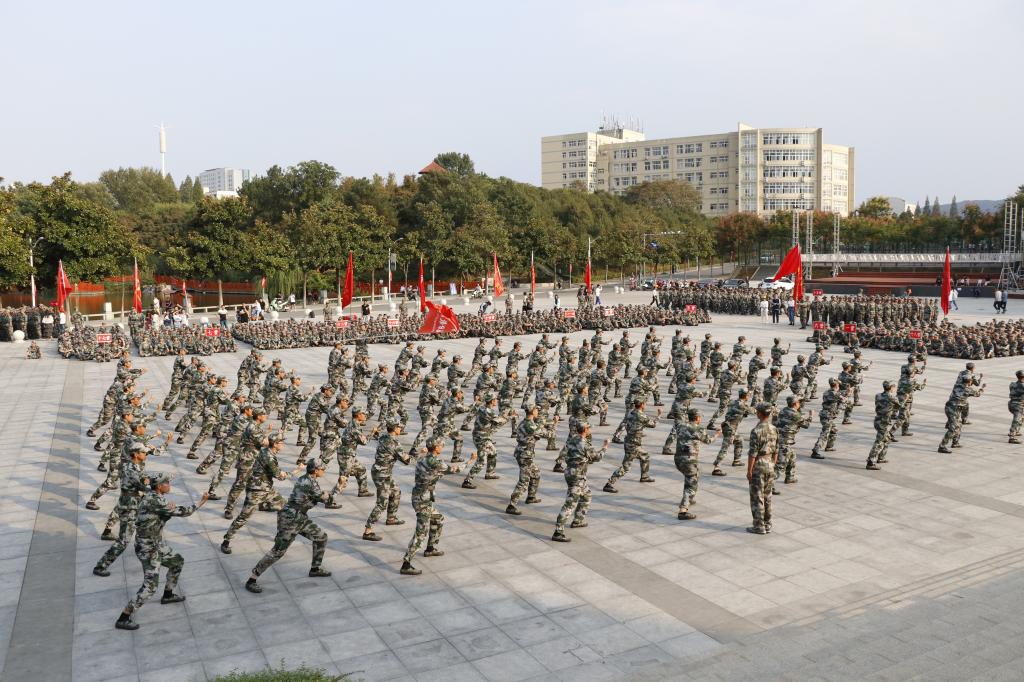 田径场上,红旗飘扬,乐曲激昂。湛蓝的天空下,一个个整齐的方阵、一双双兴奋的眼神,期待着检阅的到来。整齐的队伍,饱满的精神,响亮的口号,昂扬的斗志,展现出新时代大学生奋发向上的风采,昭示着青年学子们的勃勃生机和美好未来。在《解放军进行曲》雄壮的旋律中,3003新葡平台的新生们踏着号角,迎着秋风,整齐有序的走向主席台接受检阅。嘹亮的口号响彻整个校园,经历了十五天严格军事训练后,3003新葡平台2019级新生们以飒爽的英姿、整齐的步伐,赢得了阵阵掌声,充分展现了新生们昂扬的斗志和蓬勃向上的精神。同学们英姿飒爽,神采飞扬,动作整齐划一,步伐铿锵有力,军训工作也就此圆满结束。