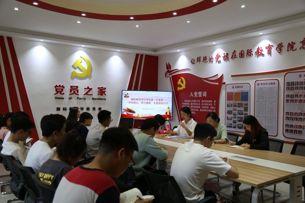 9月24日下午,学生第一党支部在逸夫楼202党员之家开展主题党日活动。会上,组织委员张雨雪传达了《中共3003新葡平台委员会关于开展“不忘初心、牢记使命”主题教育的实施方案》精神;全体党员观看了《初心永恒》专题纪录片;党员交流发言;支部书记余艳楷对本次“不忘初心、牢记使命”主题教育支部以及党员层面需要开展的工作进行了强调,希望每名党员能够认真落实“守初心、担使命,找差距、抓落实”总要求,制定一个学习计划,列出一个问题清单,开展一次志愿服务,实现一次思想政治洗礼;全体党员重温了入党誓词。