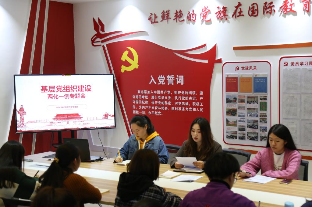 陈璐总结。中外文化交流协会党支部高度重视“两化一创”工作。在集体学习文件的基础上,全体党员开展了集中研讨。“两化一创”文件,对高校基层党组织建设具有很强的指导性和示范性。对标“两化一创”,中外文化交流协会党支部将会高标准开展好各项工作,强化支部的战斗堡垒作用,助力学院各项事业的健康发展。