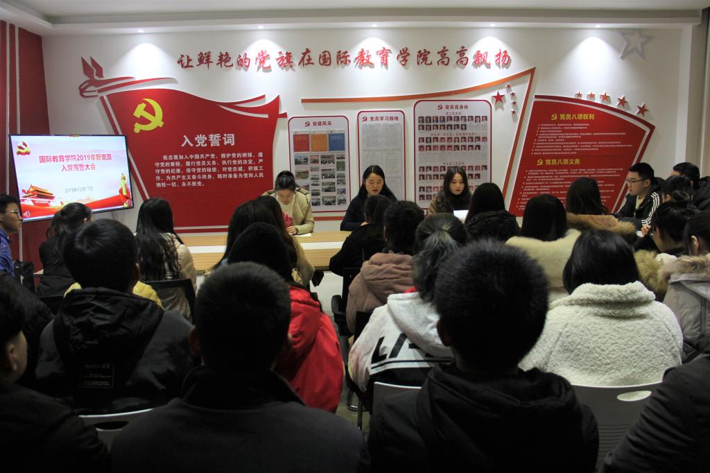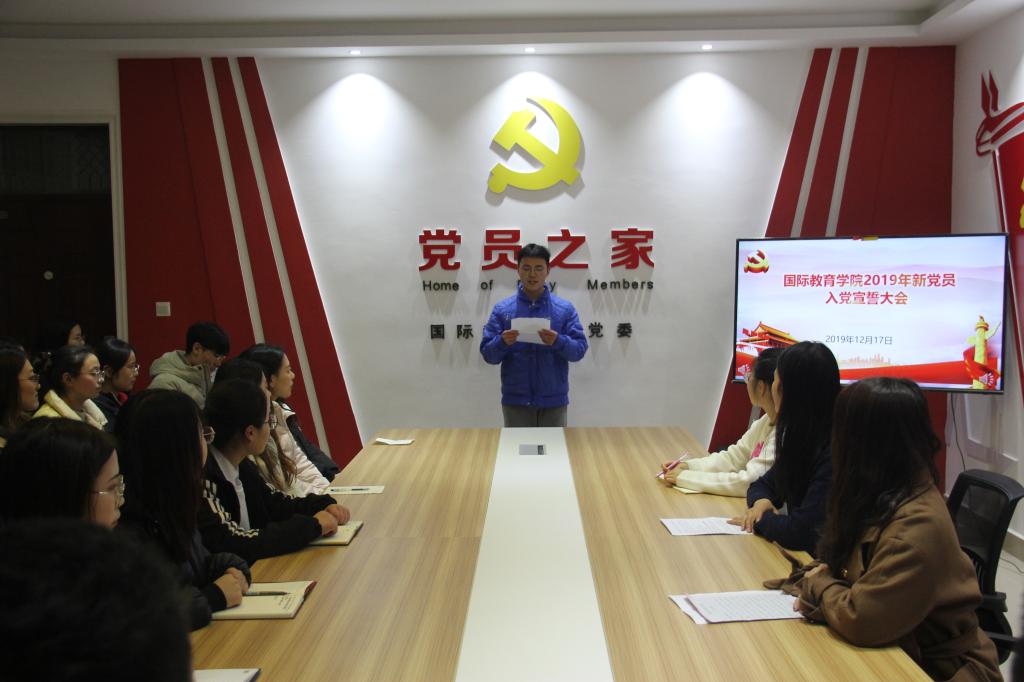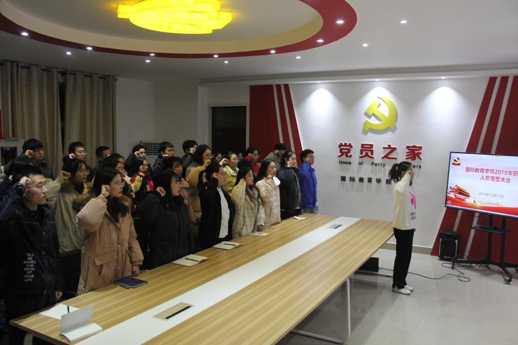12月17日下午,3003新葡平台在逸夫楼202党员之家召开了2019年下半年新党员入党宣誓大会。学生第一党支部、学生第二党支部、中外文化交流协会党支部支部书记以及新发展入党的45名党员参加。会议由余艳楷主持。