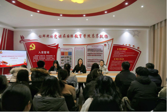 大会在《国际歌》的奏唱下拉开序幕,中外文化交流协会党支部书记陈璐同志宣读校党委组织部接收新党员的便函;学生第二党支部书记许孟杨同志带领新党员宣读入党誓词。“我志愿加入中国共产党,拥护党的纲领,遵守党的章程,履行党员义务,执行党的决定……”全体党员高举右拳,面对党旗、庄严宣誓,声音慷锵有力。
