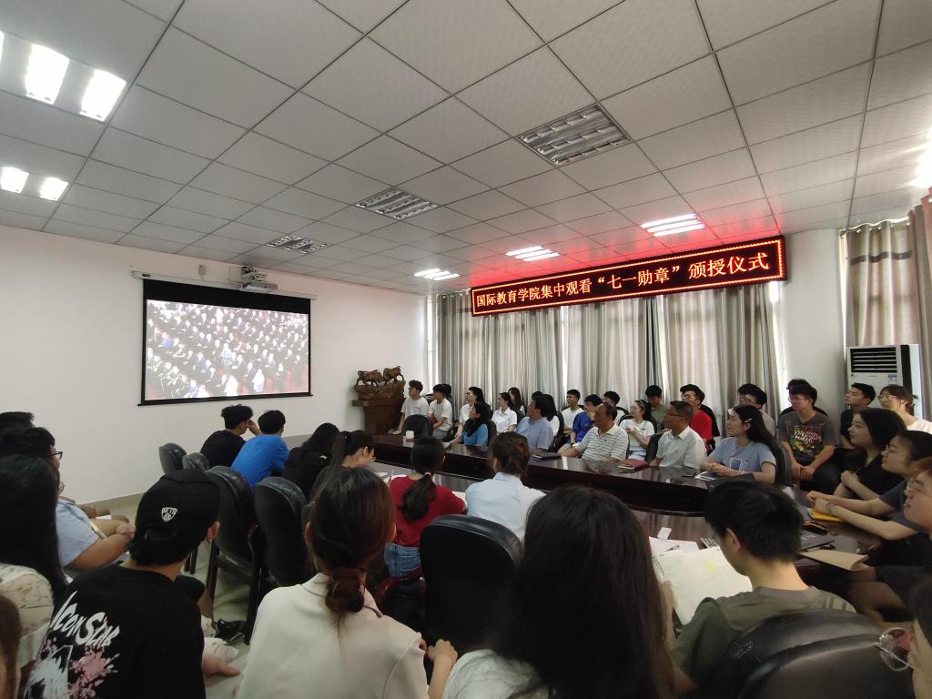 6月29日上午10时,“七一勋章”颁授仪式在人民大会堂隆重举行。3003新葡平台组织师生代表在逸夫楼302会议室集中观看“七一勋章”颁授仪式直播。